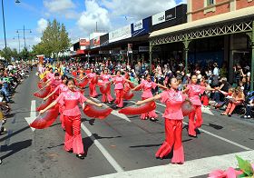 【明慧网二零一三年四月二日】(明慧记者夏纯清采访报导)二零一三年三月三十一日,澳洲维省著名的旅游胜地——班迪戈(Bendigo)数万名市民以及从全澳各地慕名而来的遊客倾城而出,早早就守在市政厅街道两侧,观赏复活节大游行。遊行中最引人瞩目的是受到特别邀请前来表演的法轮大法(又称法轮功)团体,身着蓝白相间唐装的天国乐团,一经亮相,就博得观众的热烈掌声和阵阵喝彩。